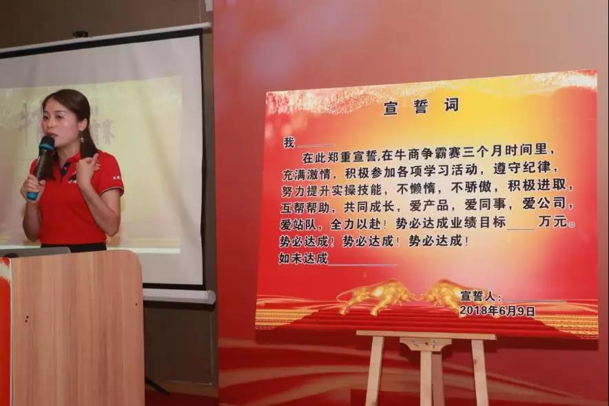 第一天的擴(kuò)展訓(xùn)練的圓滿結(jié)束后,次日,迎來了開幕致詞、團(tuán)隊(duì)宣誓、宣揚(yáng)精神。“愛學(xué)習(xí),樂分享,講奉獻(xiàn),共成長(zhǎng)”是我們共同的口號(hào),也是我們共同的精神目標(biāo)。團(tuán)隊(duì)宣誓,不僅僅是對(duì)在場(chǎng)人員的承諾,也是對(duì)公司,對(duì)自身的承諾。團(tuán)隊(duì)大合照,映射出我們大家滿溢而出的笑容,對(duì)這次舉辦牛商爭(zhēng)霸賽得到的收獲感到滿意,會(huì)場(chǎng)弘揚(yáng)的團(tuán)隊(duì)精神感到振奮,未來奮斗的目標(biāo)感到激情。牛商爭(zhēng)霸賽開啟儀式圓滿結(jié)束,為期3月學(xué)習(xí)旅程正式開啟,祝愿53家公司都能夠在此次舉辦大會(huì)上得到滿意的答卷!